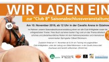 Der „Club der guten Ritte“ feiert seine Mitglieder – und zwar am 10.11.2018 ab 12.00 Uhr in der Cavallo-Arena in Güstrow! Alle im Club 8 angemeldeten Pferdesportler, die in der Weiterlesen →